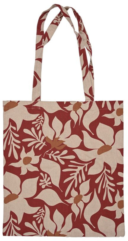 Torba zakupowa Edith – trwały i stylowy towarzysz codzienności. Piękny, kwiatowy wzór w ciepłych odcieniach nadaje jej ponadczasowy charakter i sprawia, że torba jest zarówno praktycznym, jak i dekoracyjnym dodatkiem. Wykonana z materiałów wytrzymałych i przyjaznych dla środowiska. Idealna na zakupy spożywcze, jak i na wycieczki. Wzór w czerwone kwiaty dostępny jest również w formie obrusu i ściereczki kuchennej. Wymiary: 40x44 cm (70% bawełna z recyklingu, 30% poliester z recyklingu). Projekt: Studio Sagaform.