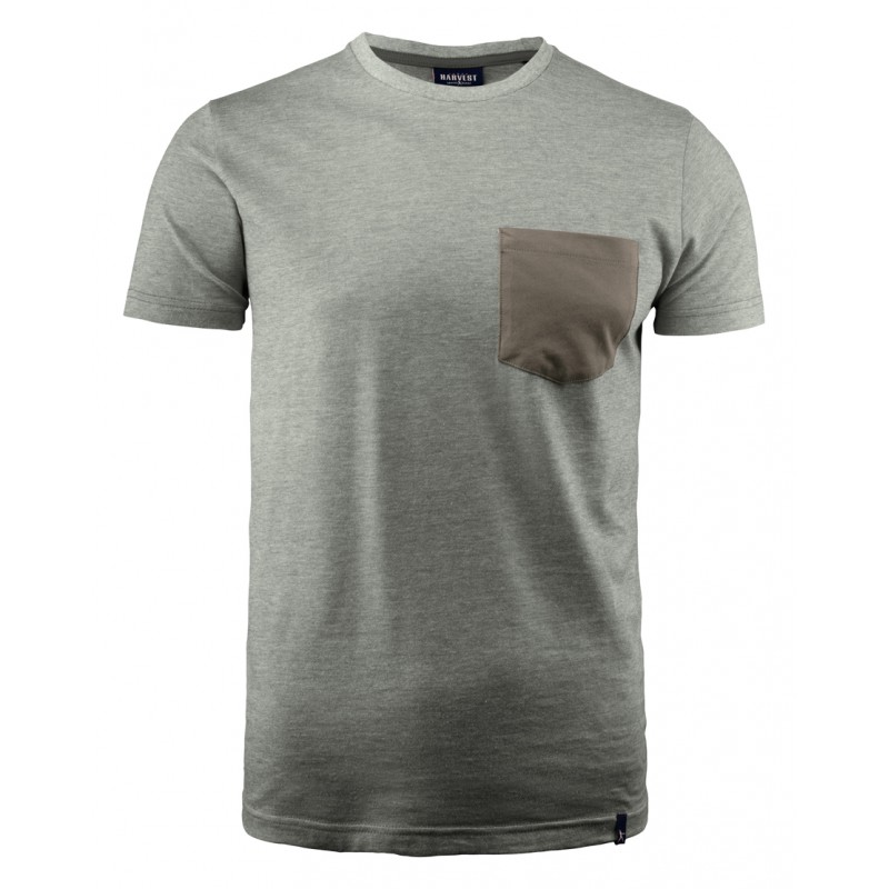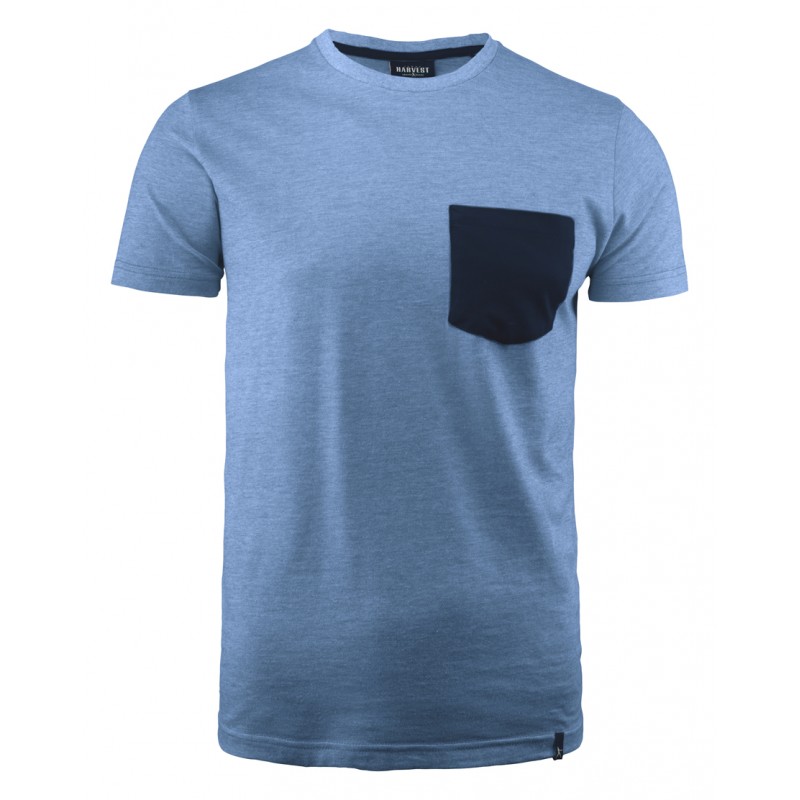 T-shirt z okrągłym dekoltem i dekoracyjną kieszenią na piersi. Przeszycia na mankietach i dole.