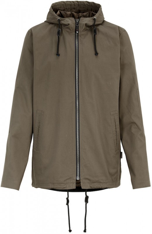 Bawełniana kurtka z kapturem z tyłu. Kurtka na podszewce, zamki YKK, sznurki ze stoperami w kapturze i w obwódce. Zamykane kieszenie z przodu z dekoracyjnym przeszyciem oraz wewnętrzna kieszeń.