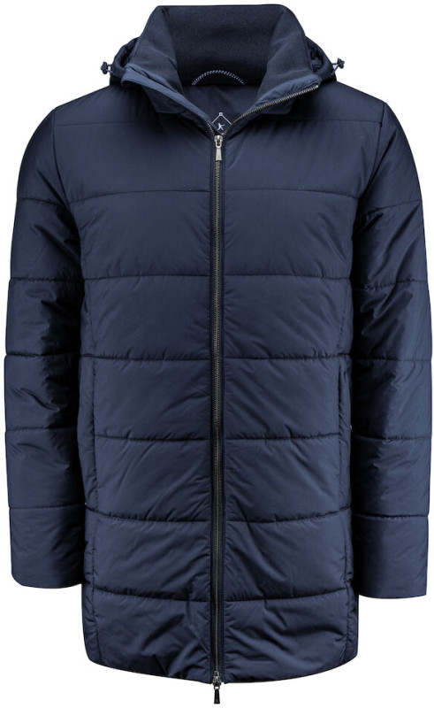 Dłuższa pikowana kurtka z dwustronnym zamkiem błyskawicznym. Odpinany kaptur, regulowany za pomocą elastycznych sznurków. Obszyty ściągaczem kołnierz oraz ściągacze na rękawach. Dwie kieszenie boczne na zamek błyskawiczny. Jedna kieszeń na piersi wewnątrz z zamkiem błyskawicznym. Miękka dzianina wewnętrzna w kieszeniach bocznych.